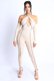 Overlock Detailed Cross Halter Keyhole Neck Off Shoulder Set