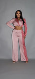 COLORBLOCK CROP BLAZER WITH MATCHING LOW RISE WIDE LEG PANT SET WITH POCKETS