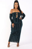 Striped Velvet Off Shoulder Dress